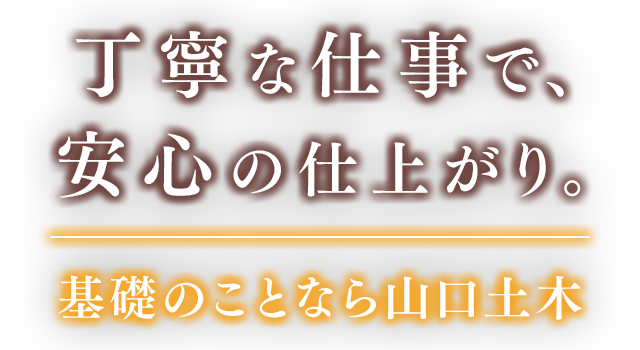 山口土木は住宅基礎工事を中心に、bDパイルやブレードパイルの施工販売、PUBB工法、SP免震基礎工法、地盤沈下修正工事など、さまざまな施工方法に対応しています。